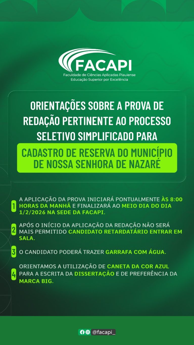 O Processo Seletivo Simplificado será regido por este Edital e executado sob a responsabilidade do Centro de Educação Superior Piauiense – UNICESP/ FACAPI, empresa vencedora do procedimento licitatório tendo contrato administrado número 081/2025, consistente para todos os cargos a primeira fase Análise Curricular, de caráter classificatório e eliminatório, e uma segunda fase: Para cargos de professor será através da realização de aula prática; Para os demais cargos de Ensino Médio e Ensino Superior, a segunda fase será uma Redação dissertativa com tema de acordo com a área que está concorrendo; e para os outros cargos de ensino fundamental ou fundamental incompleto, será apenas analisado a primeira fase( análise curricular) todos os cargos visando formação de Cadastro Reserva, conforme necessidade apresentada no item 3.1, deste Edital.